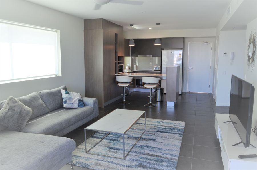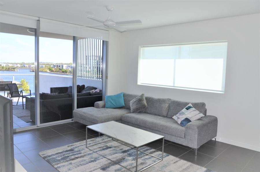 Currently on offer is this modern and stylish, two-bedroom, two-bathroom, fully furnished, waterfront apartment.